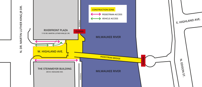 Location: Highland Avenue east of MLK to the Milwaukee River, the Riverwalk north of Highland and the Highland Pedestrian Bridge